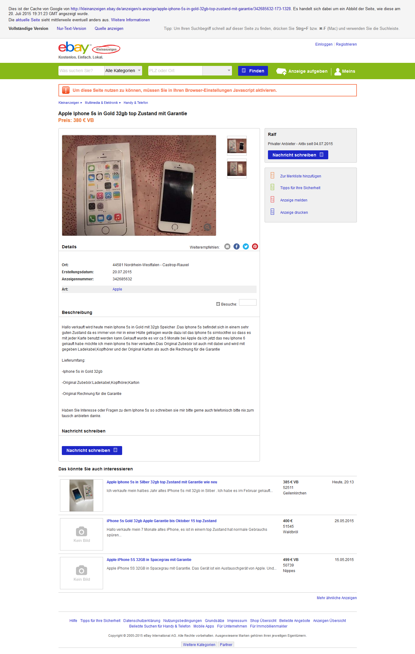 Betrugsfall Im Raum Menden Fröndenberg Und Iserlohn über Ebay
